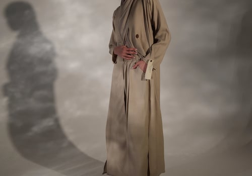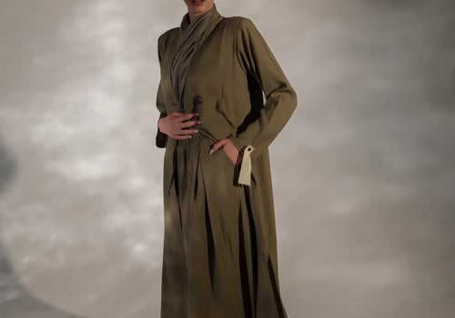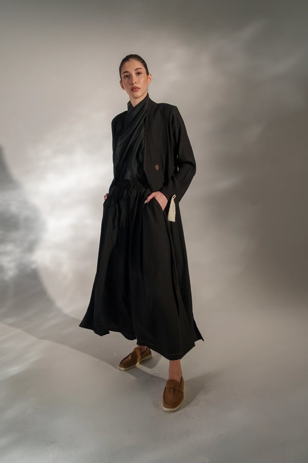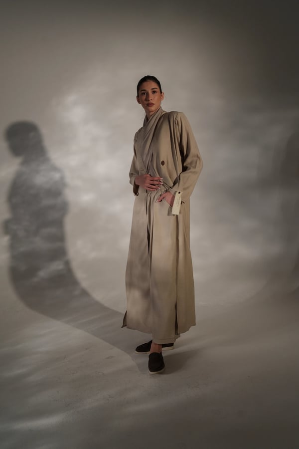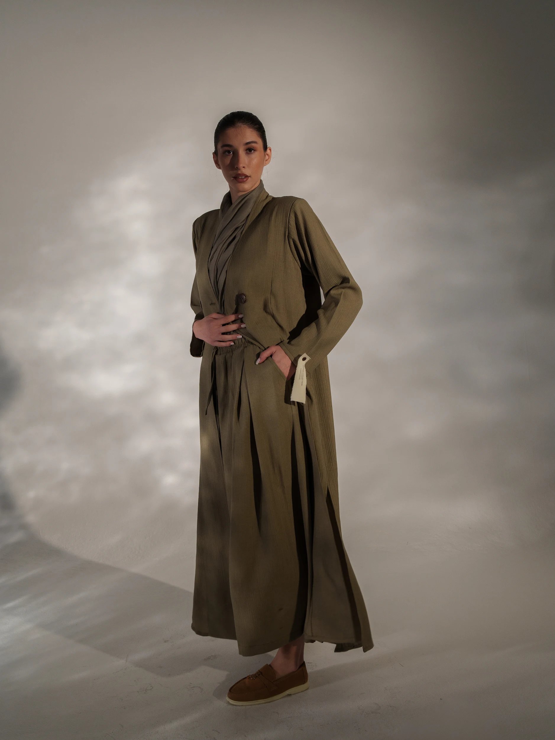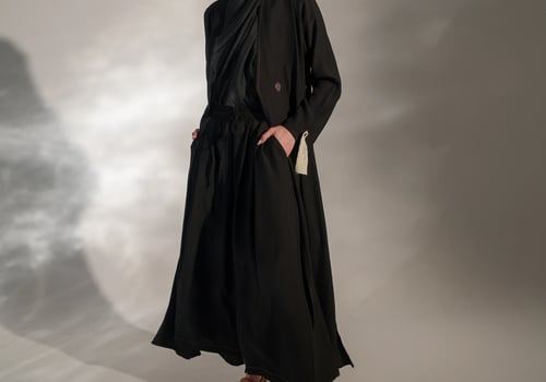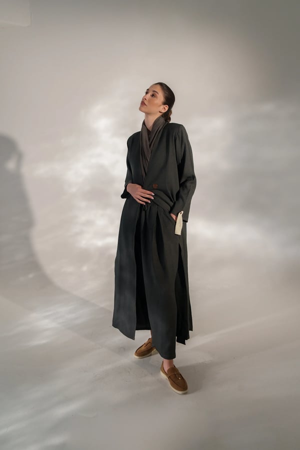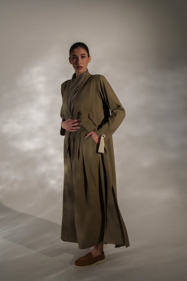 عبايه من قماش الكريب المجعد بفتحات وبنطلون وحجاب