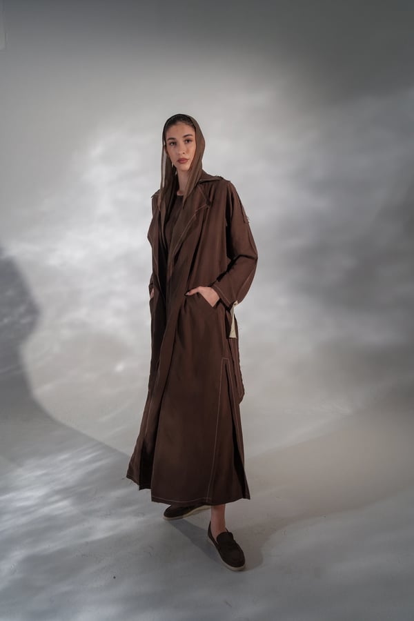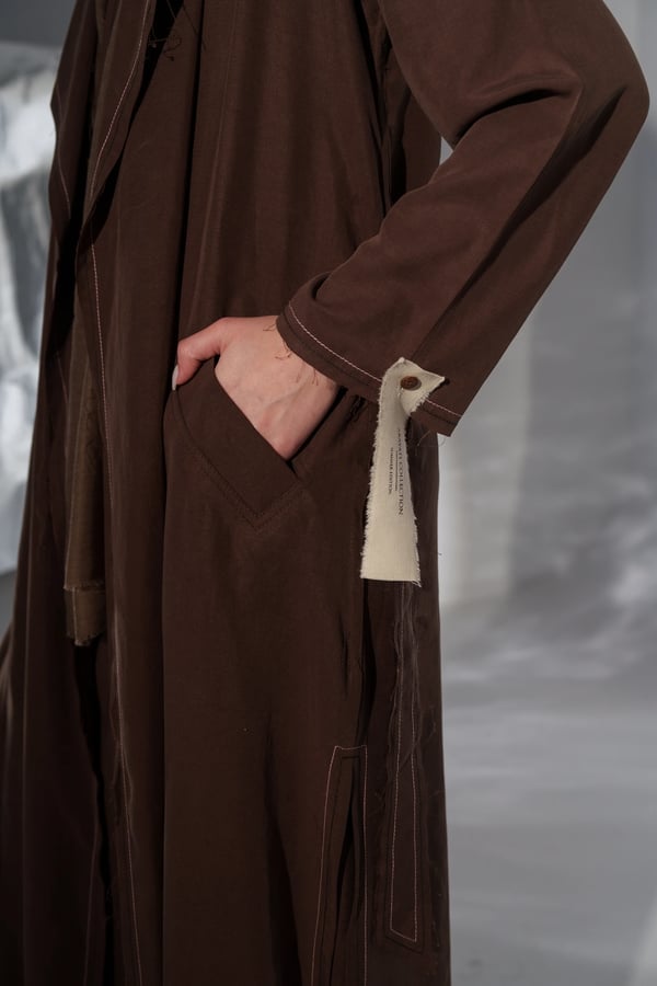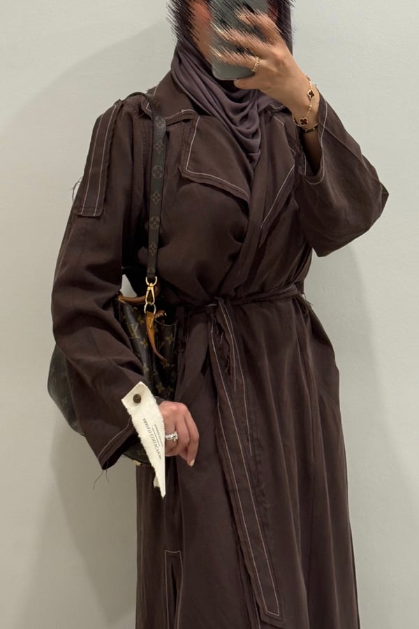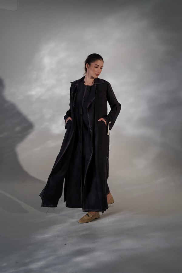 عبايه بفتحات مع فستان وحجاب من قماش الشال
